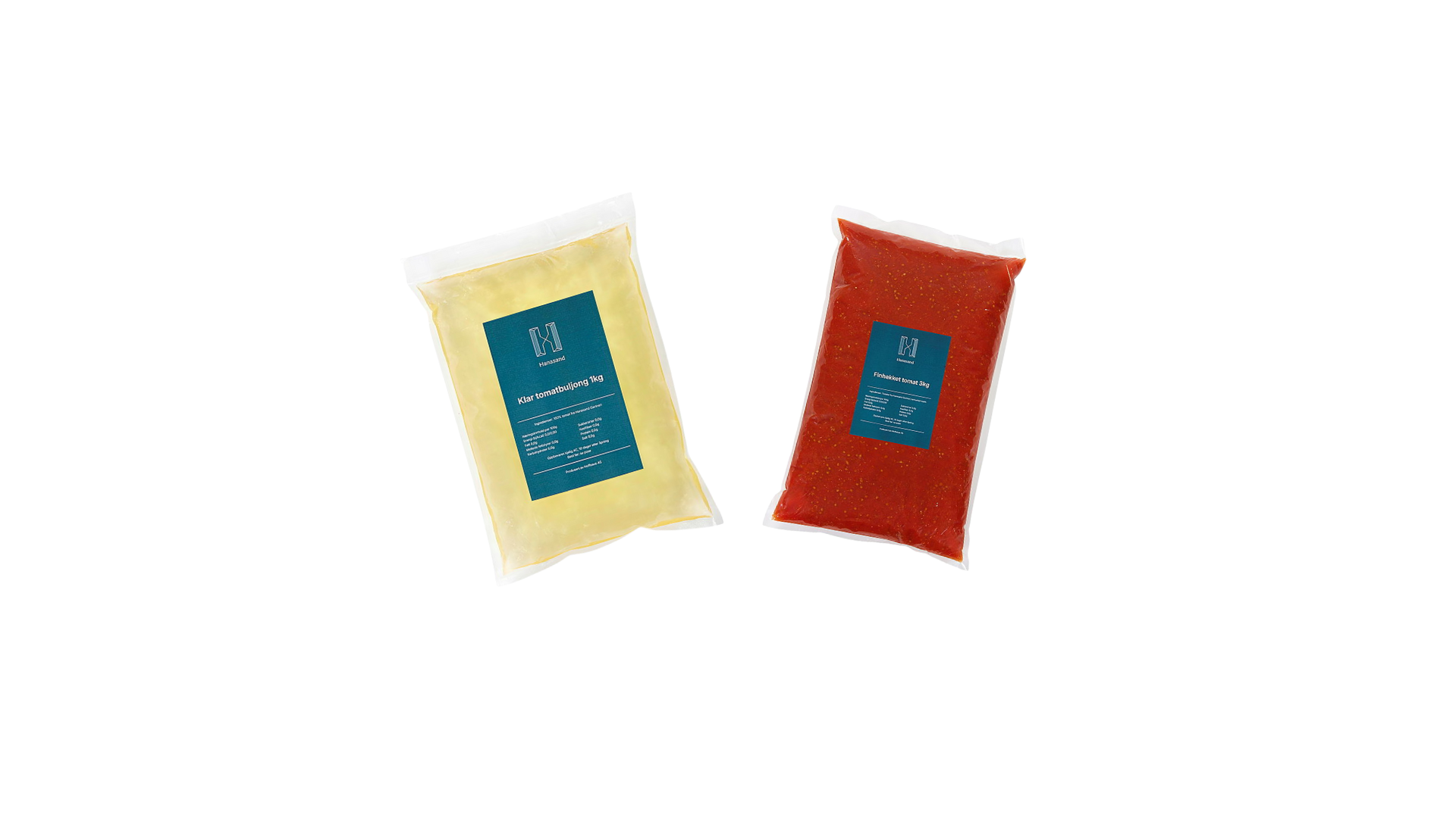 Klar tomatbuljong laget av 100 % Hanasand-tomater, basert på ca. 40 % tomatvann fra produksjonen av Hanasand finhakket tomat. Full av ren, frisk tomatsmak og perfekt som base i supper, erstatning for grønnsakskraft, i dressinger eller som ren buljong i retter. Leveres som frysevare for enkel porsjonering og redusert svinn.